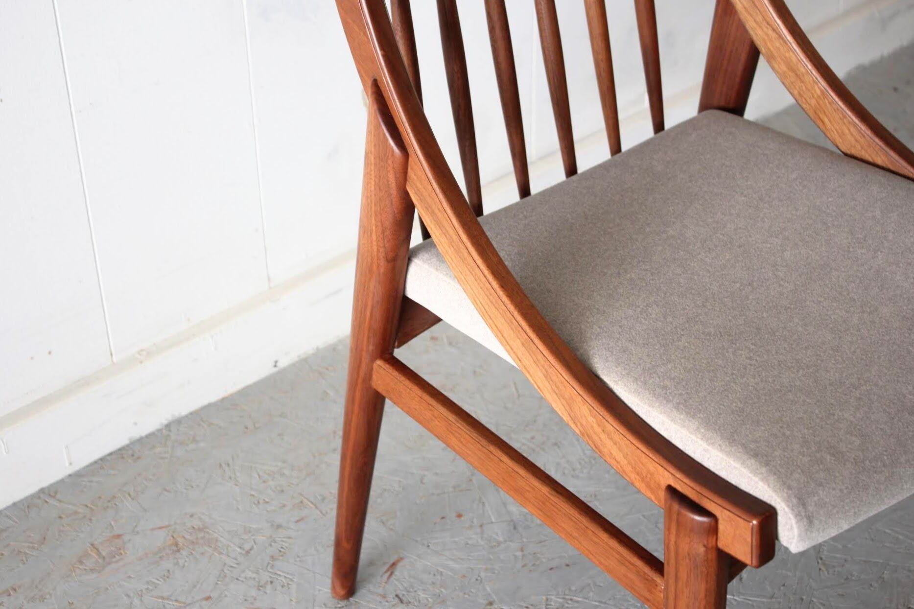 脚は接合部から、脚先の先端に掛けて徐々に丸く削り出しているのも特徴の一つです。それにより機械化ではできない絶妙なテイストが生まれます。