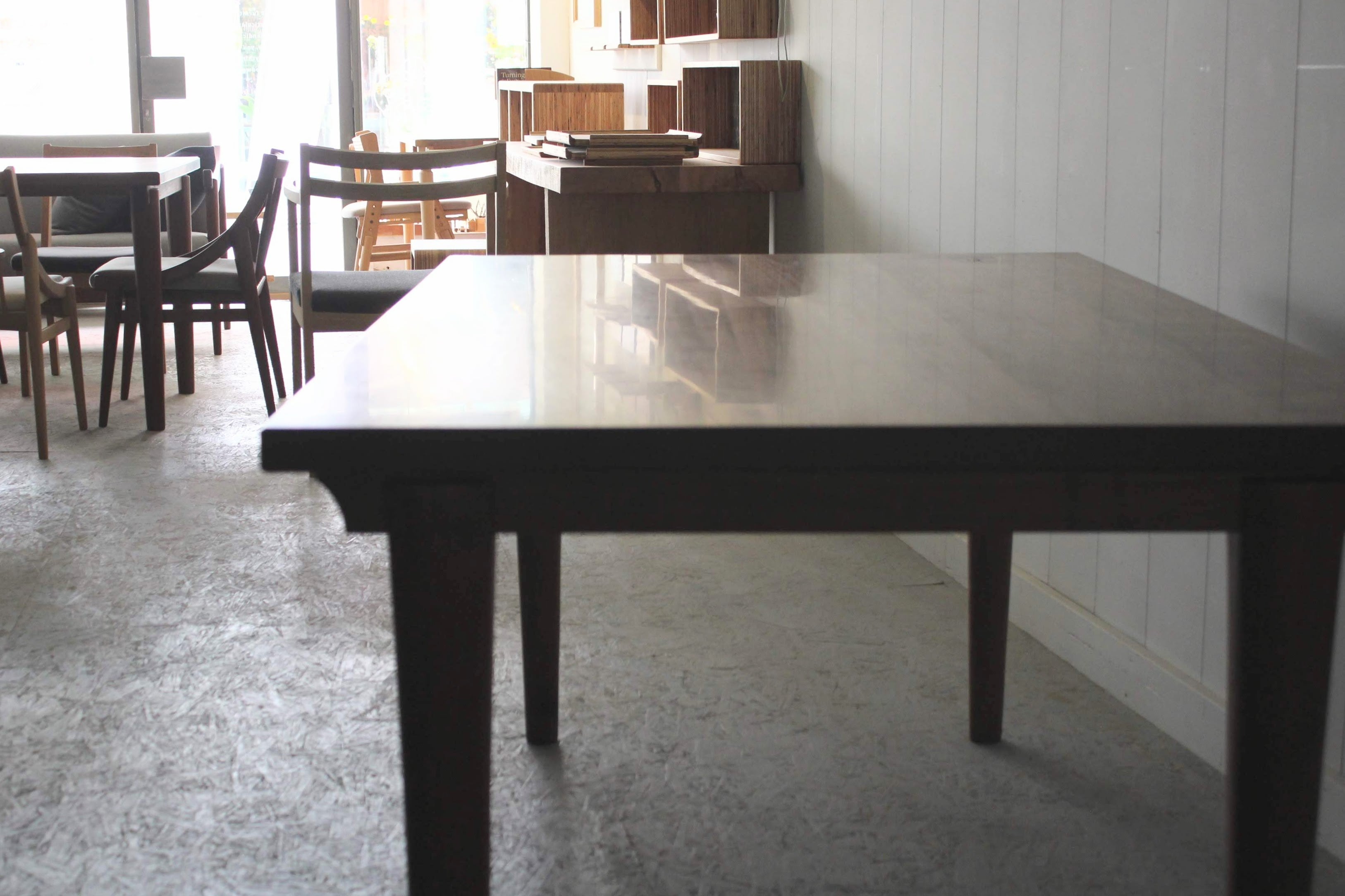 塗料はウレタンと数種類のオイルをブレンドし、拭き上げ、耐水性と木の質感の両方のバランスを保てるようにしています。