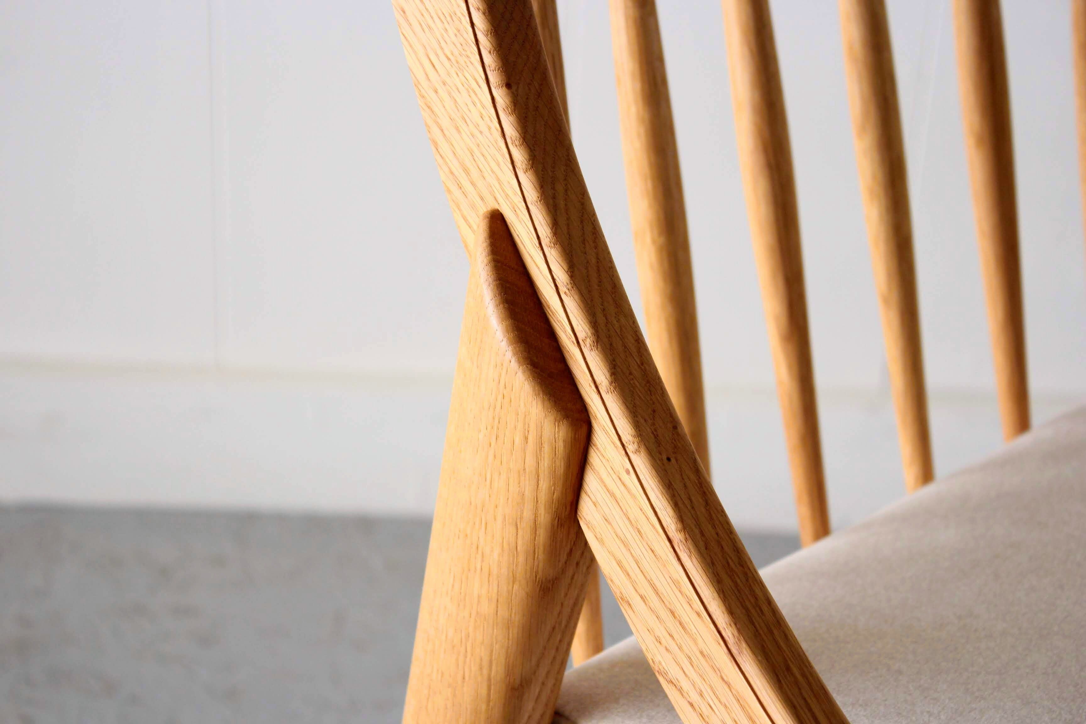 縦に並んだスポークの背のあたり感も心地よく背を支えてくれます。 生地は、スペインからの輸入品で汚れも水で落ちやすく、厚みがありしっかりとした感触です。