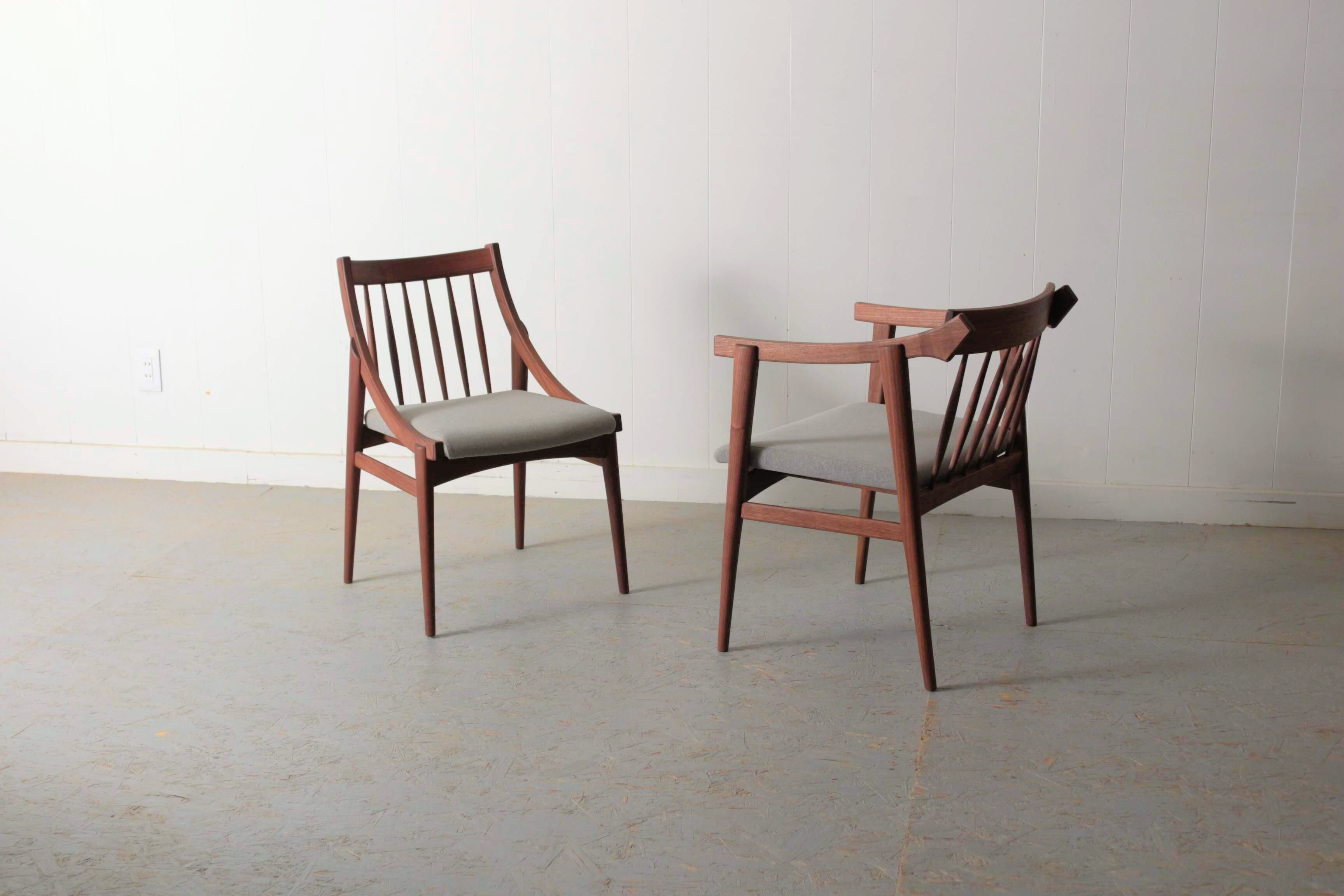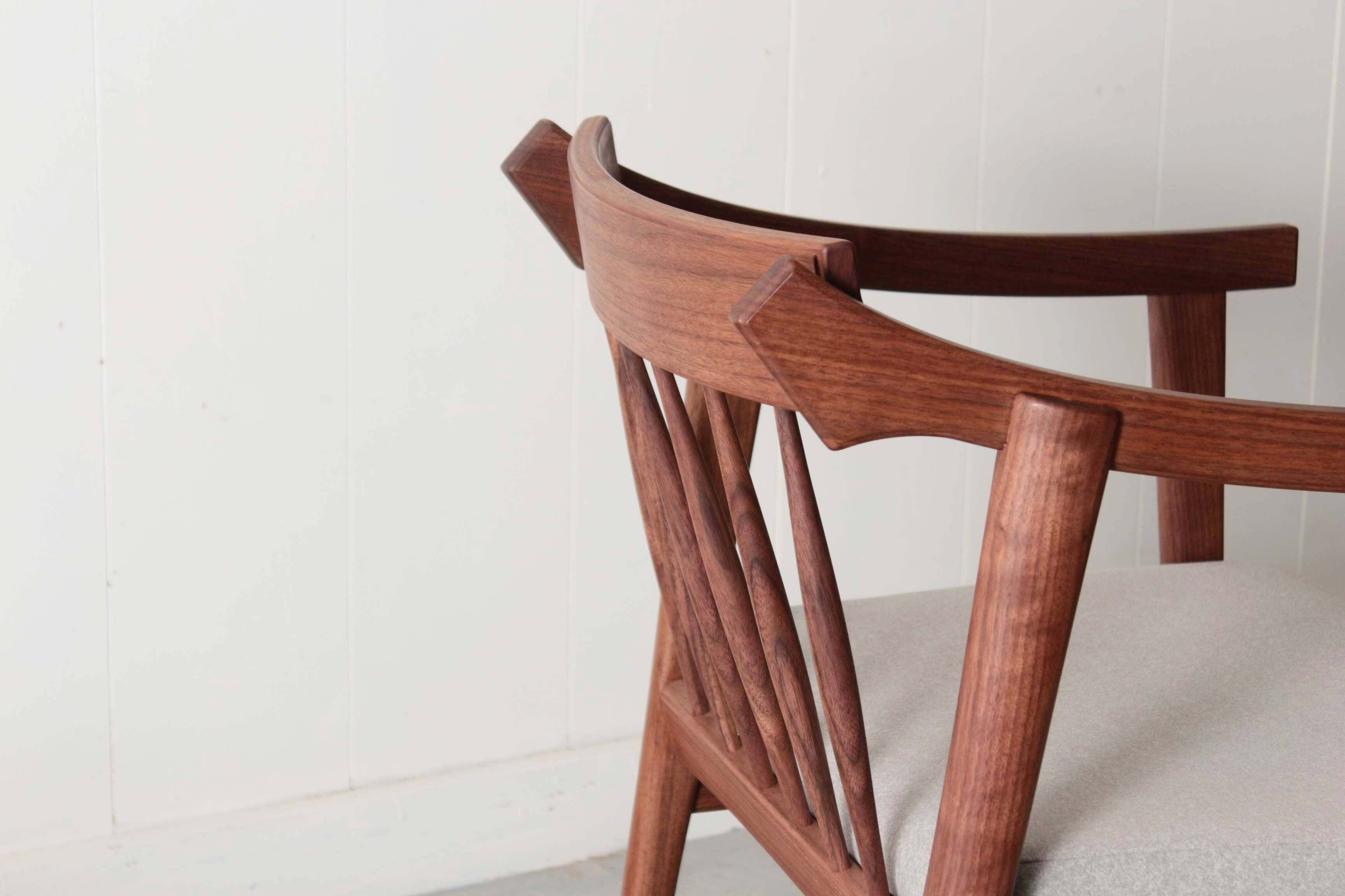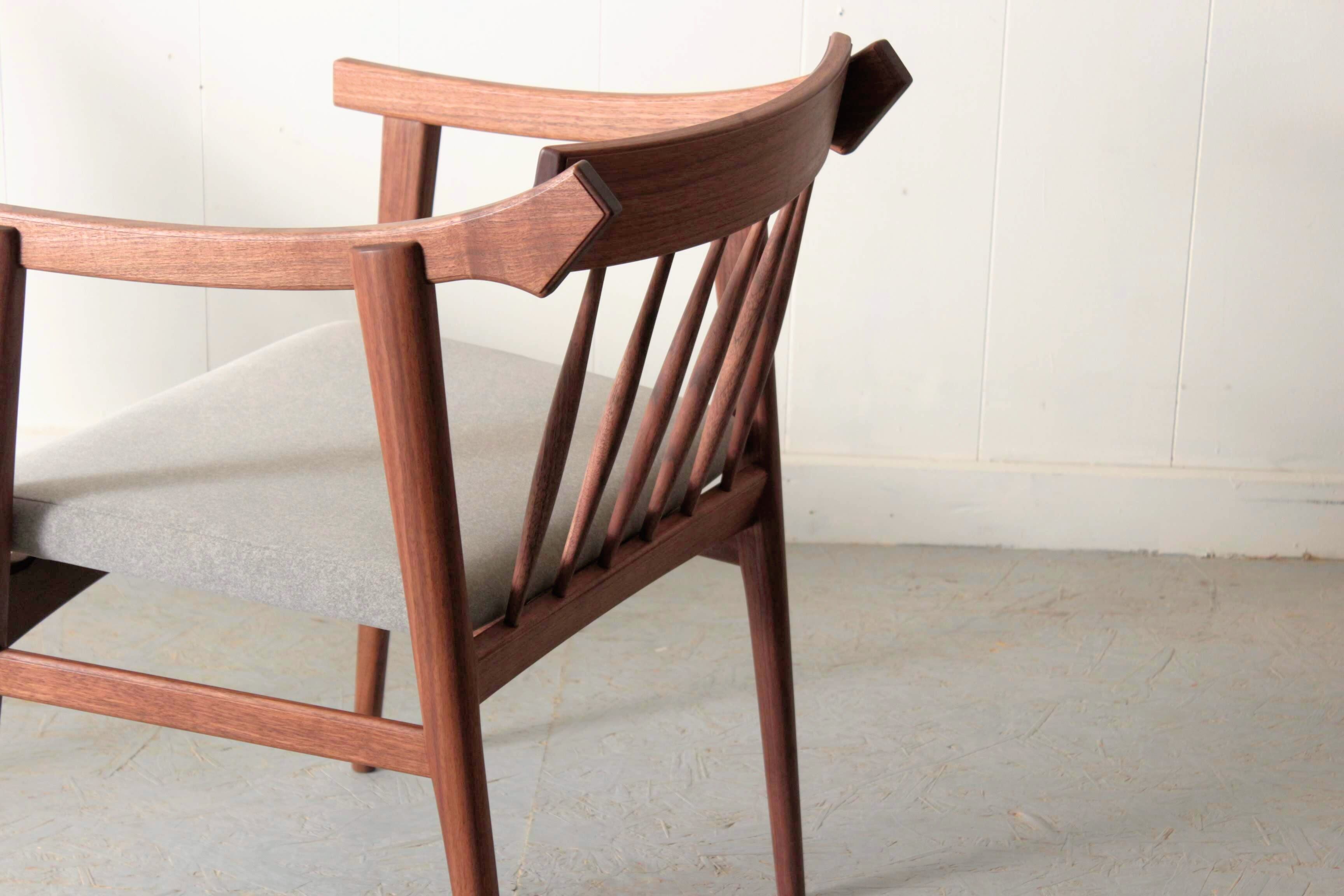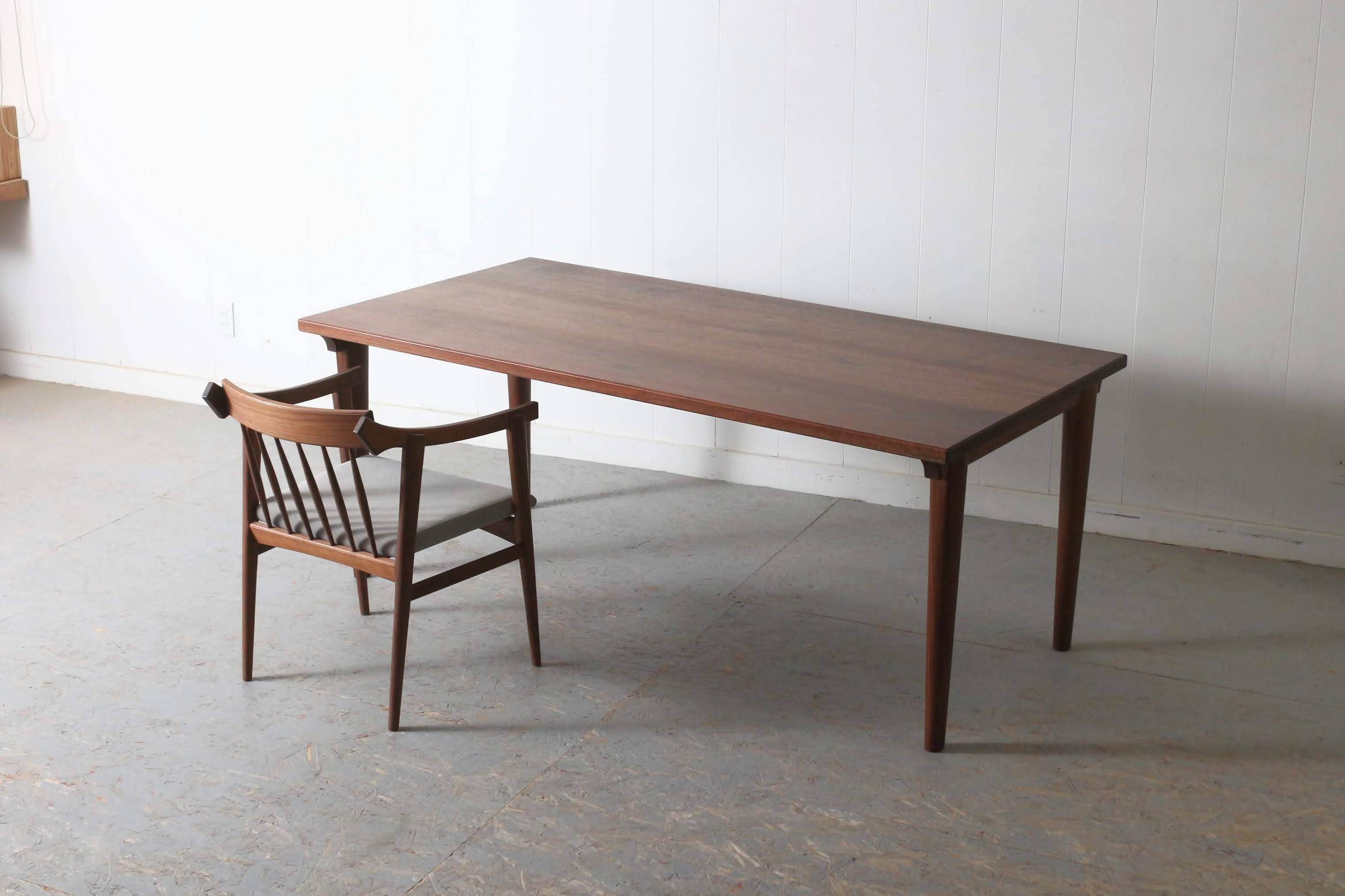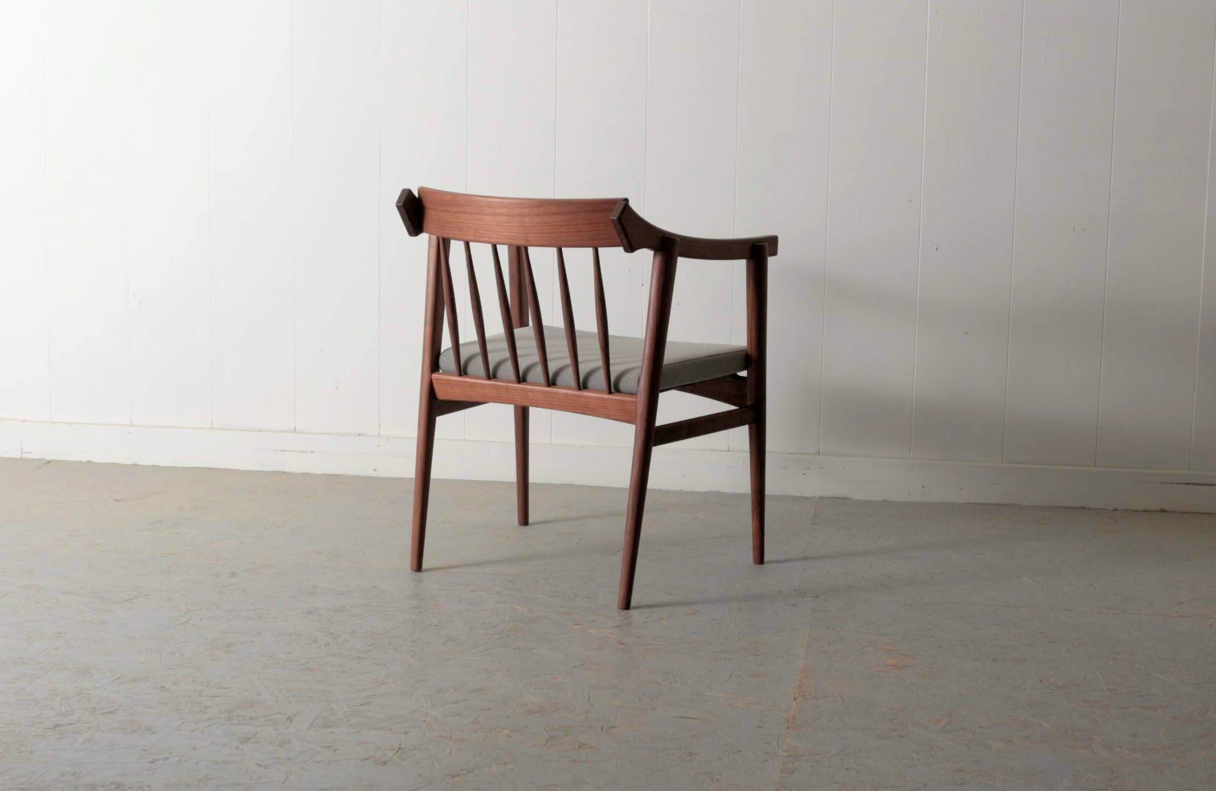 こちらも細部までこだわりぬき、手仕事でならではの箇所、品良くまとめる事を意識して製作しています。脚は接合部から、脚先の先端に掛けて徐々に丸く削り出しているのも特徴の一つです。それにより機械化ではできない絶妙なテイストが生まれます。