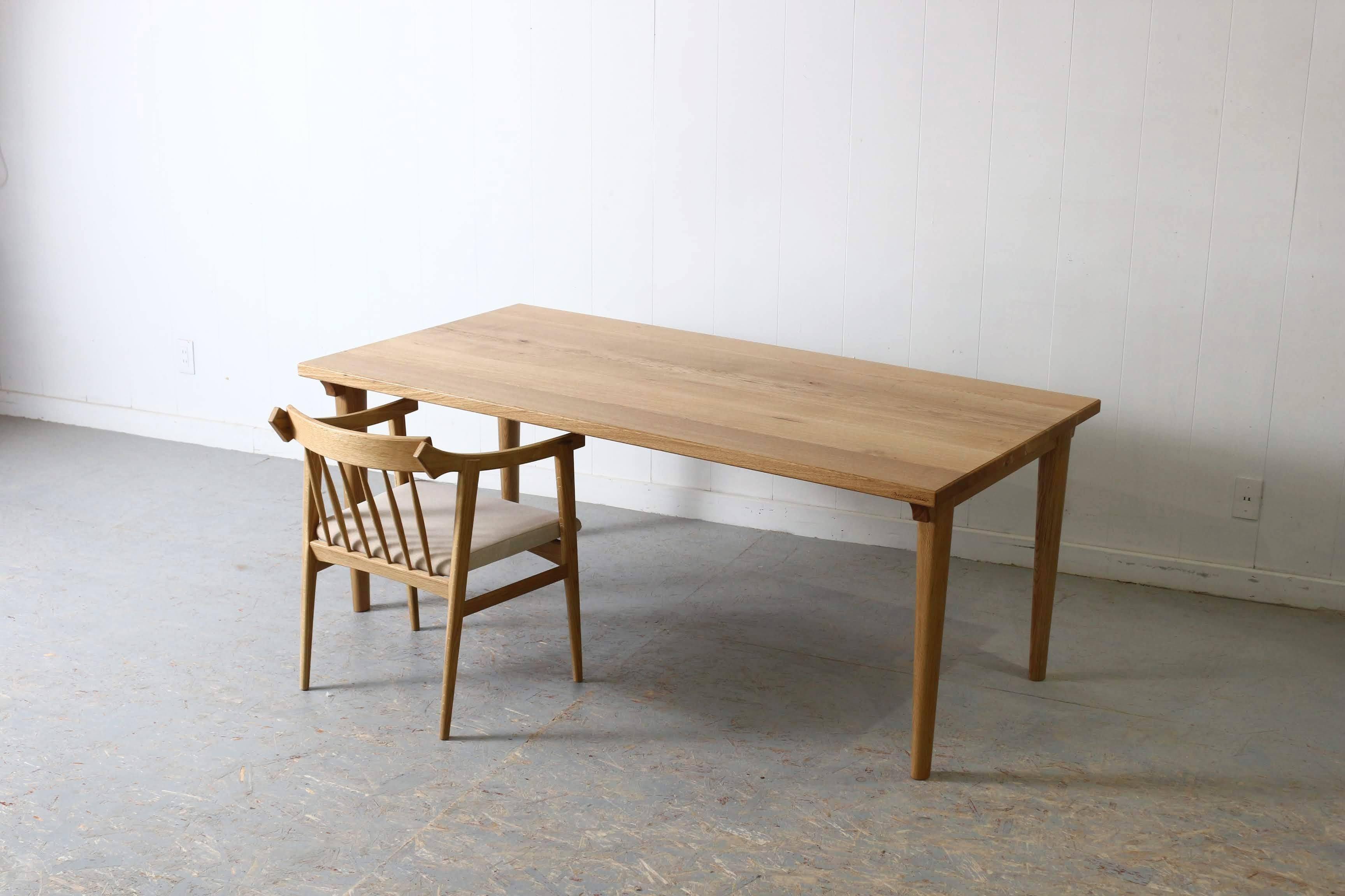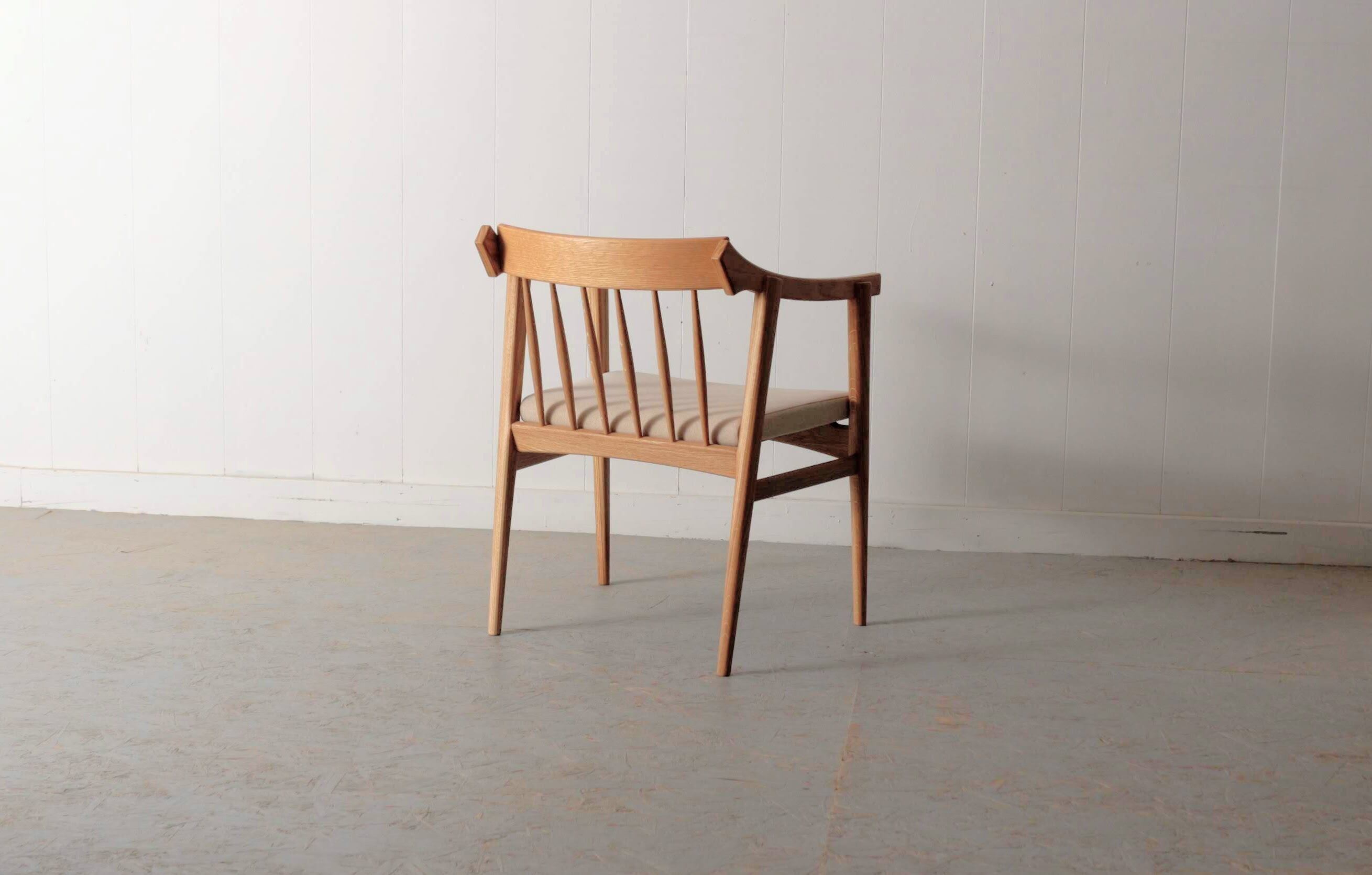 こちらも細部までこだわりぬき、手仕事でならではの箇所、品良くまとめる事を意識して製作しています。脚は接合部から、脚先の先端に掛けて徐々に丸く削り出しているのも特徴の一つです。それにより機械化ではできない絶妙なテイストが生まれます。