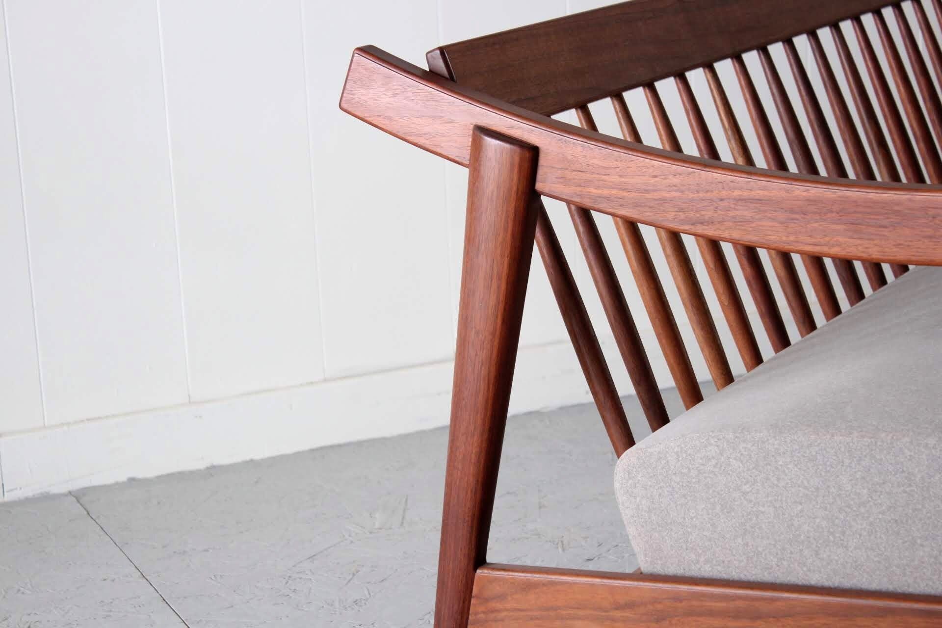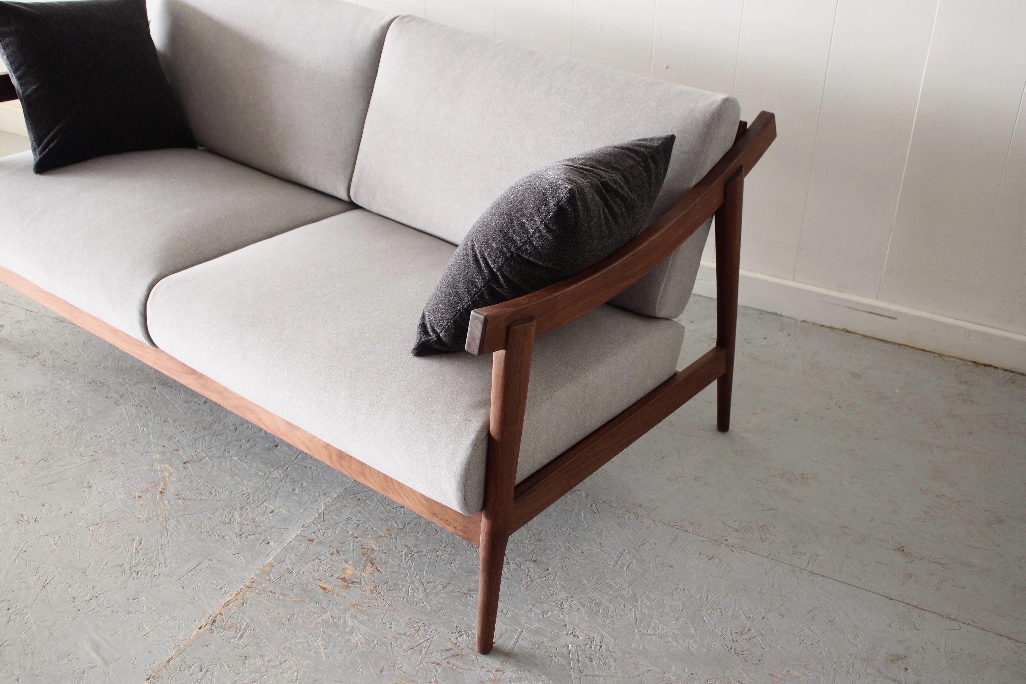 背のクッションは形を保ちながらも柔らかく、座面はやや硬めで疲れにくい構造です。 また、クッションを外して広々と出来ます。後ろ姿も美しく、リビングの中央付近に配置しても映えます。