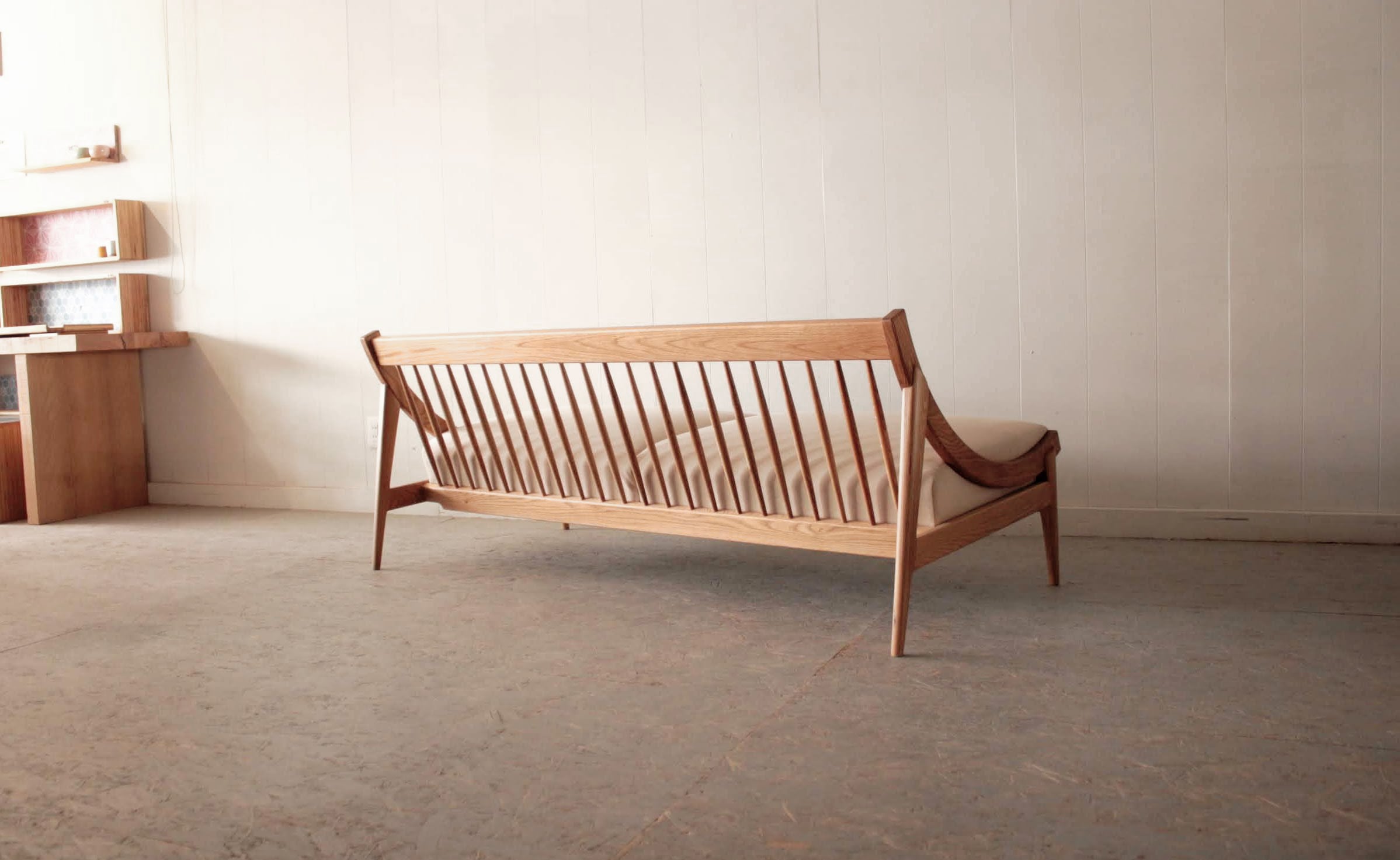 製品は1人で製作している為、想いはダイレクトに込められます。私にとって家具は、芸術的に行き過ぎるでもなく、また使い捨てになるでもなく、長く生活必需品の道具のとしての役割(使用目的、美しく調和する事、存在感など)を果たしていきたいと考えております。その為、製作内容としまして機械化する事と、手仕事の良さのバランスを意識し製作しています。