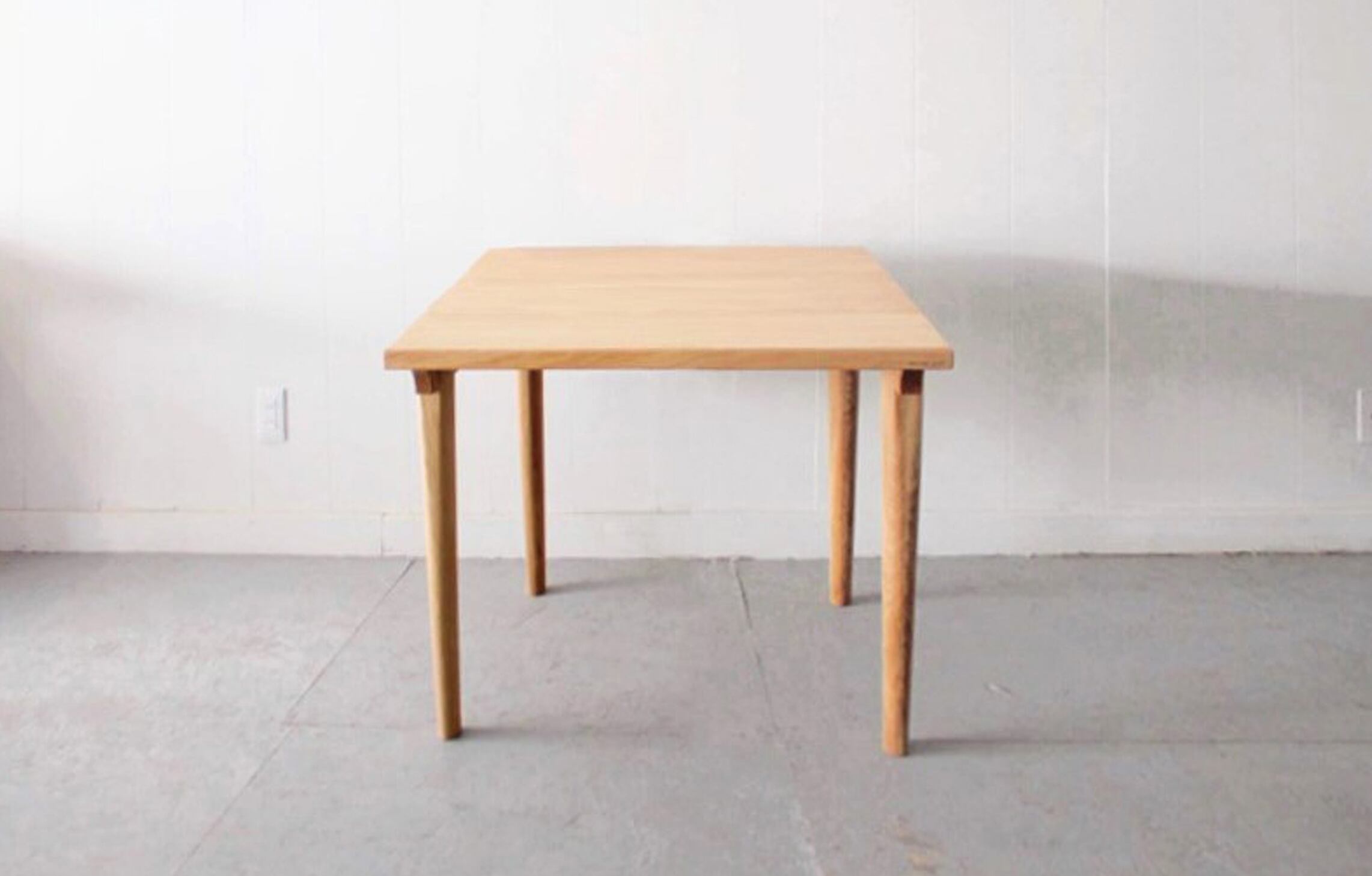 細部までこだわりぬき、手仕事でならではの箇所、品良くまとめる事を意識して製作しています。脚は接合部から、脚先の先端に掛けて徐々に丸く削り出しているのも特徴の一つです。