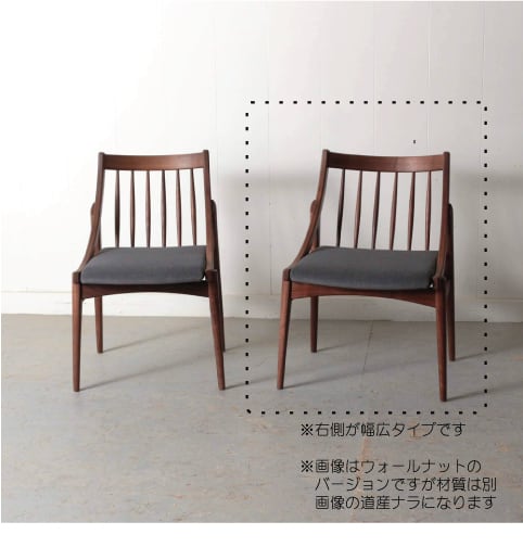 シリーズを代表する椅子のダイニングチェア(アームレス)のタイプから幅が50㎜広くなったバージョンです。