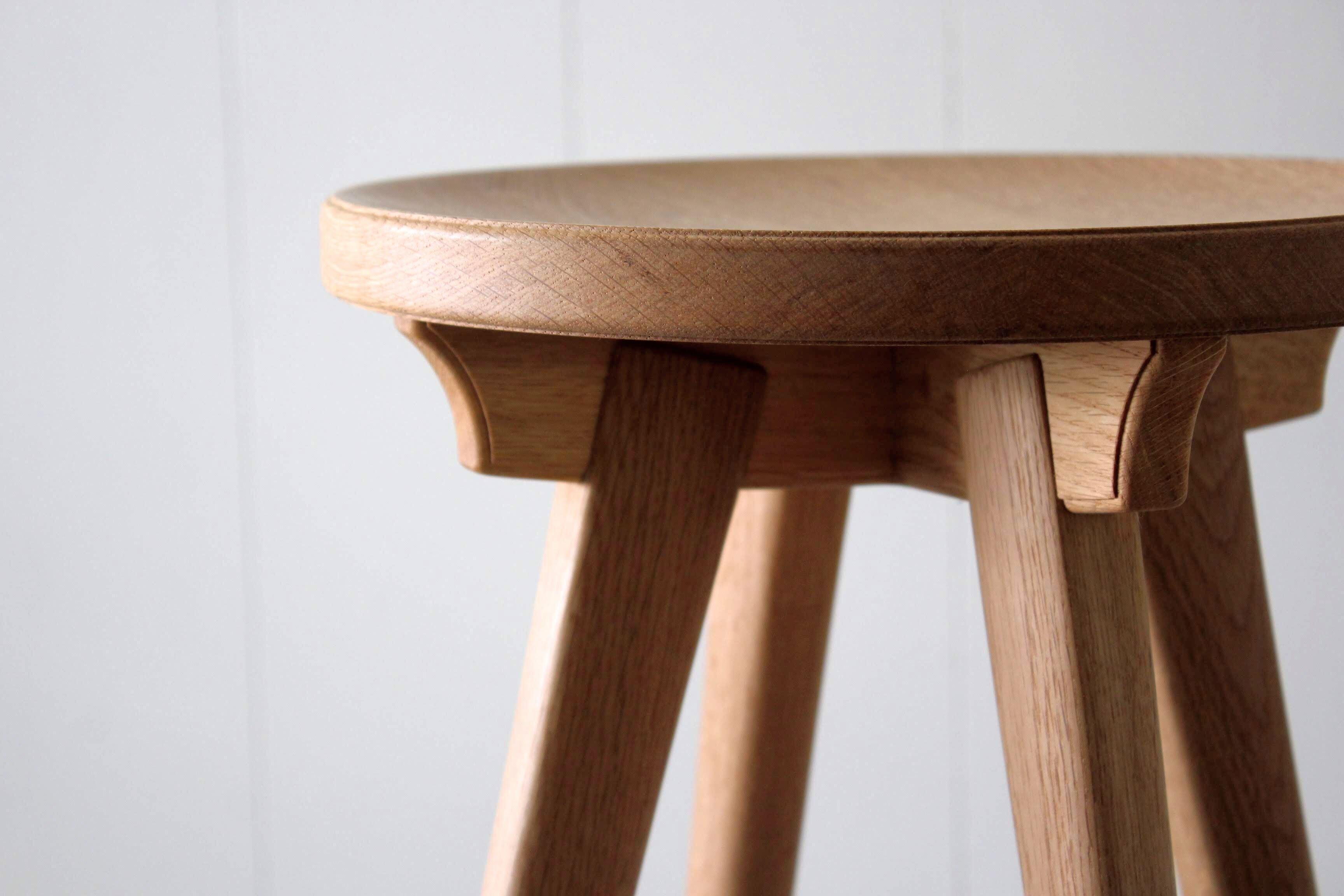 丸く窪んだ座面の掘り込みがやさしい座り心地のハイスツール。